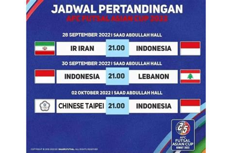Hingga saat ini, Federasi Sepak Bola Asia (AFC) belum merilis secara resmi Jadwal final Indonesia vs Iran futsal Piala Asia 2026. Informasi mengenai tanggal, waktu, dan lokasi pertandingan final biasanya akan diumumkan setelah babak kualifikasi dan fase grup selesai digelar.